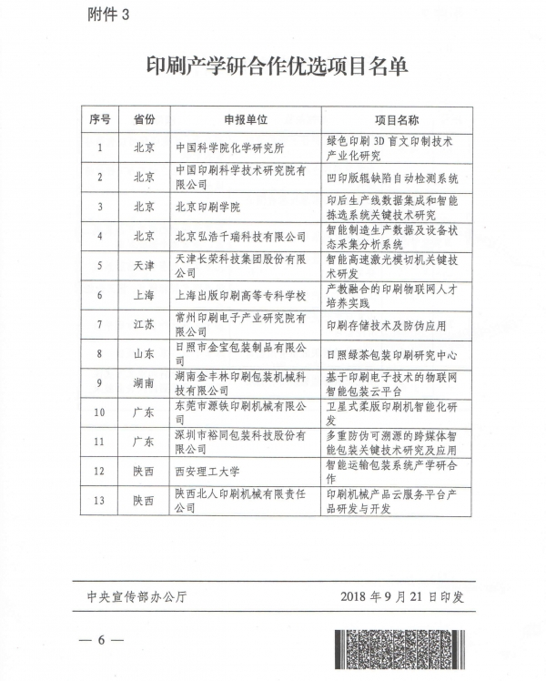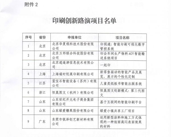 2018年7月19日,國家新聞出版署印發了《關于開展印刷重點項目儲備和智能制造發展情況調查的通知》,對印刷重點項目進行了征集。經整理規范、資格審查、專家評審,共評選出印刷重點項目47個。其中,印刷智能制造示范和試點項目25個、印刷創新路演項目9個、印刷產學研合作優選項目13個。