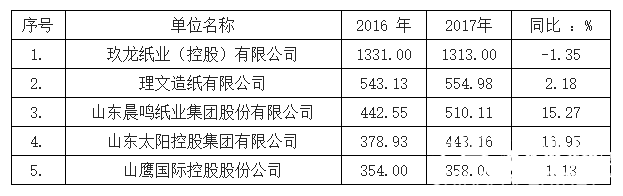 2017年重點造紙企業產量:萬噸