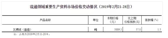自春節結束以來,國家統計局公布了2次重要生產資料市場價格變動,瓦楞紙價格皆為上漲。