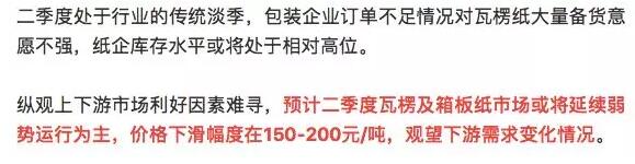 二季度瓦楞及箱板紙或延續(xù)弱勢