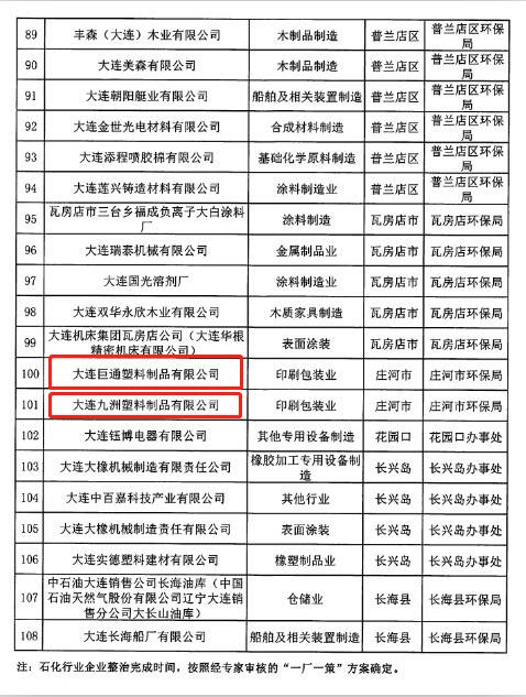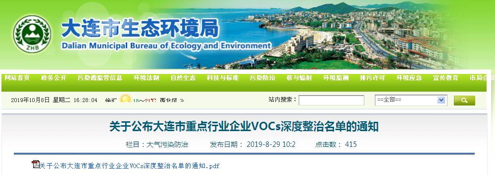 為貫徹落實《大連市重點行業揮發性有機物深度整治工作方案》,大連市生態環境局組織篩選出了大連市涉VOCs重點行業企業,此次先行公布第一批、第二批深度整治企業名單。此名單將根據實際情況動態調整,后續整治名單將陸續公布。