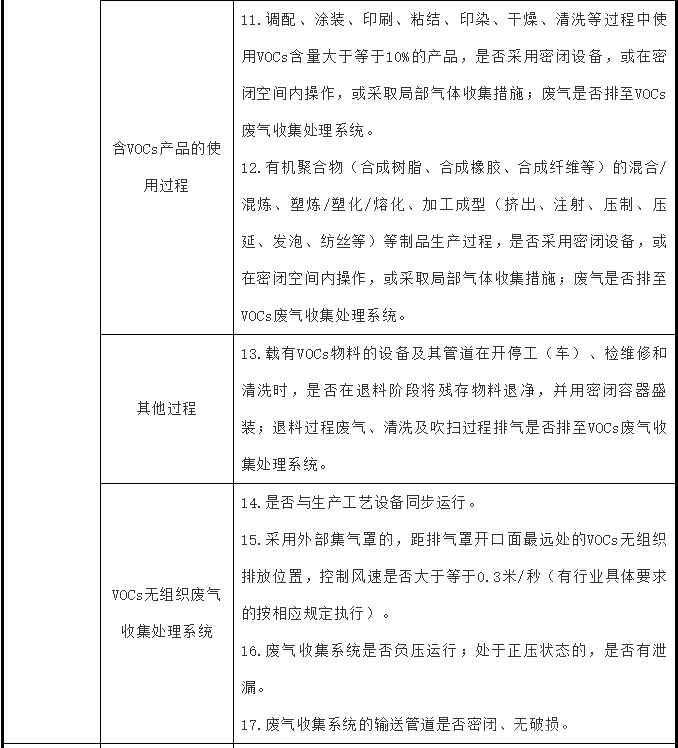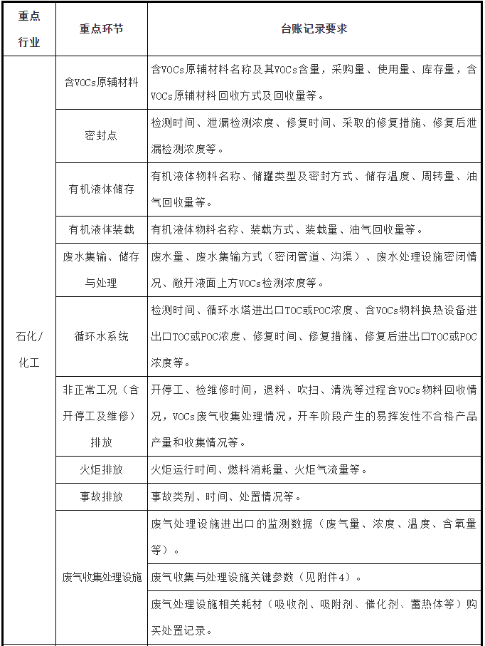 《重點行業揮發性有機物綜合治理方案》明確了VOCs重點區域范圍、重點控制的VOCs物質、VOCs治理臺賬記錄要求、工業企業VOCs治理檢查要點。
