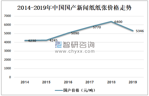 2014-2019年中國國產新聞紙紙張價格走勢