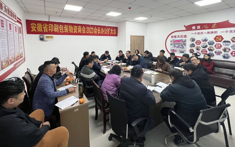 以“深入學習貫徹黨的二十大和二十屆二中全會精神,凝心聚力、不忘初心,加快實現(xiàn)印刷包裝業(yè)高質(zhì)量發(fā)展” 為主題的“安徽省印刷包裝物資商會 2023 年度首次會長辦公擴大會”,于3月21日,在合肥杏花國際廣場四樓商會黨建活動室舉行。
